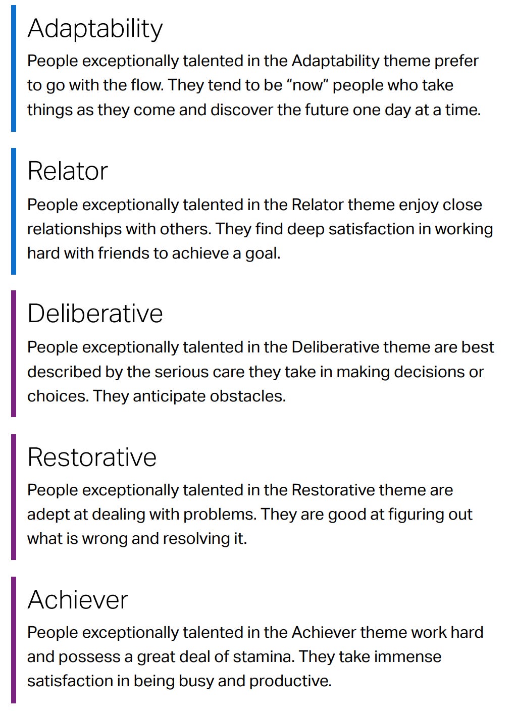 Part 2 collect objective data about yourself the podcaster recommended (this isn’t sponsored). The Top 5 strengths tests from Gallop, the output would be my top 5 unique blend of traits based questionnaire responses
